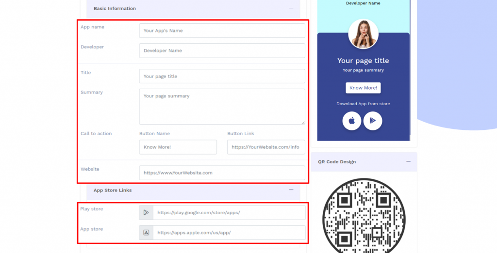 Enter the basic information details and App Store links.