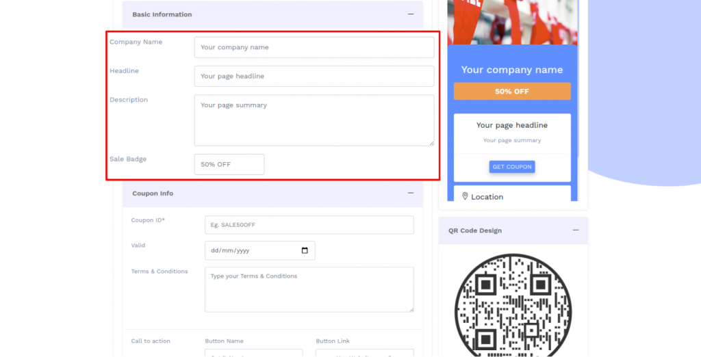 Enter the coupon information details.