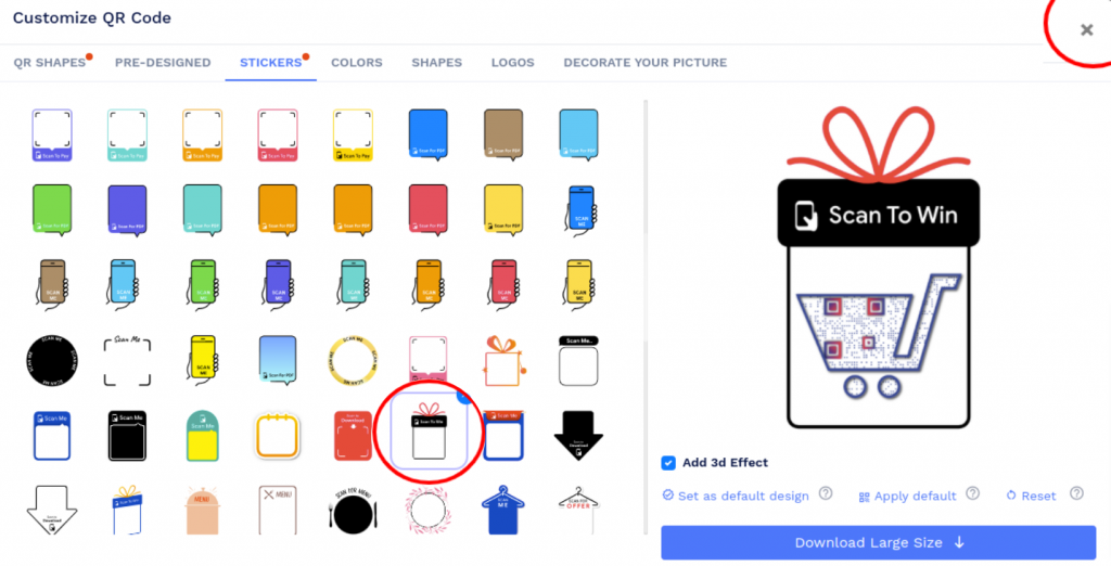 Note: Click on the 'x' icon of the 'Customize QR Code' popup to save changes.