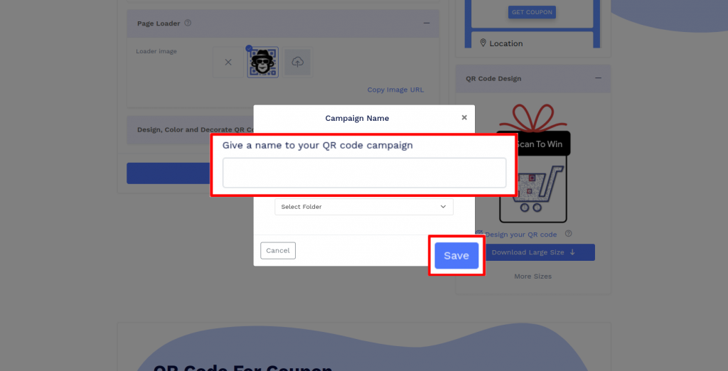 Save the QR Code by clicking on the 'Save QR Code' button, entering the QR name, and then clicking on 'Save.'